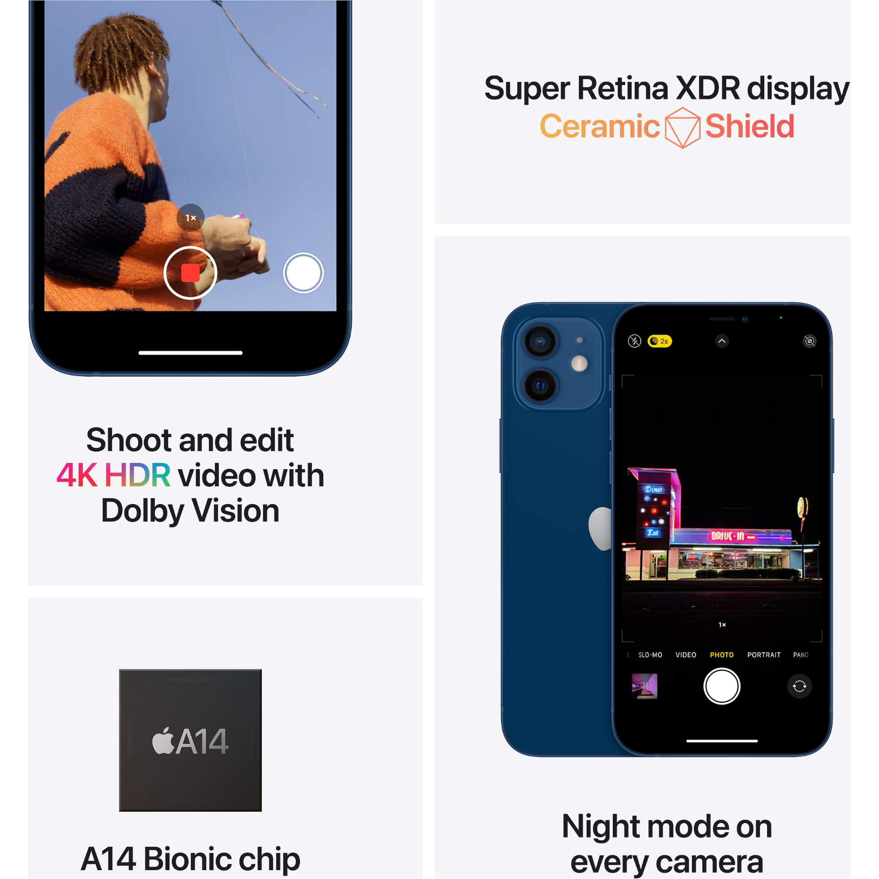 - Chip A14 Bionic: Il chip più veloce mai visto su uno smartphone.