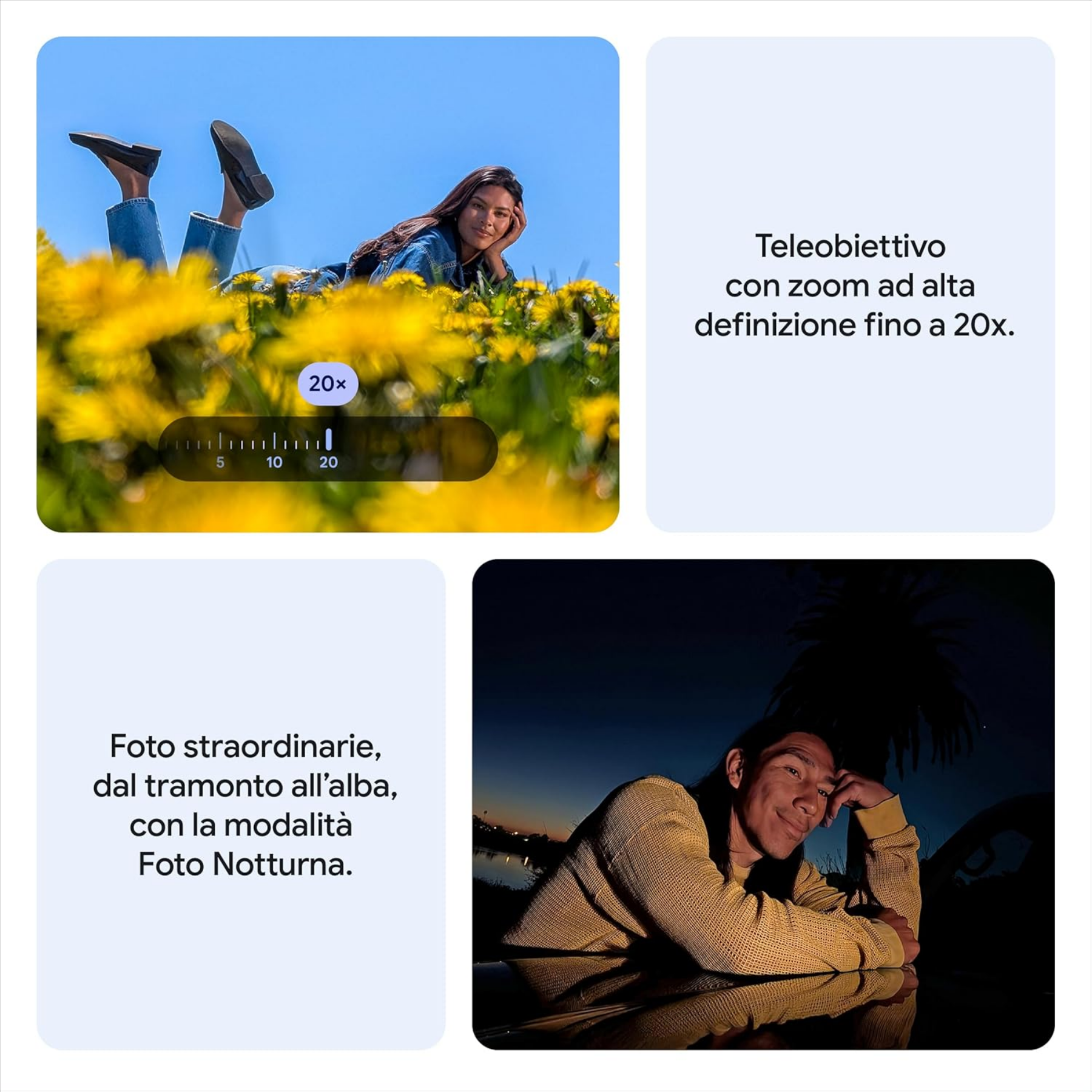 Pixel 10: Abituati allo straordinario, il Google Pixel 10 è dotato del processore più potente in assoluto, di una fotocamera innovativa e di Gemini, l’assistente AI integrato di Google, per permetterti di realizzare ancora di più le tue idee.
